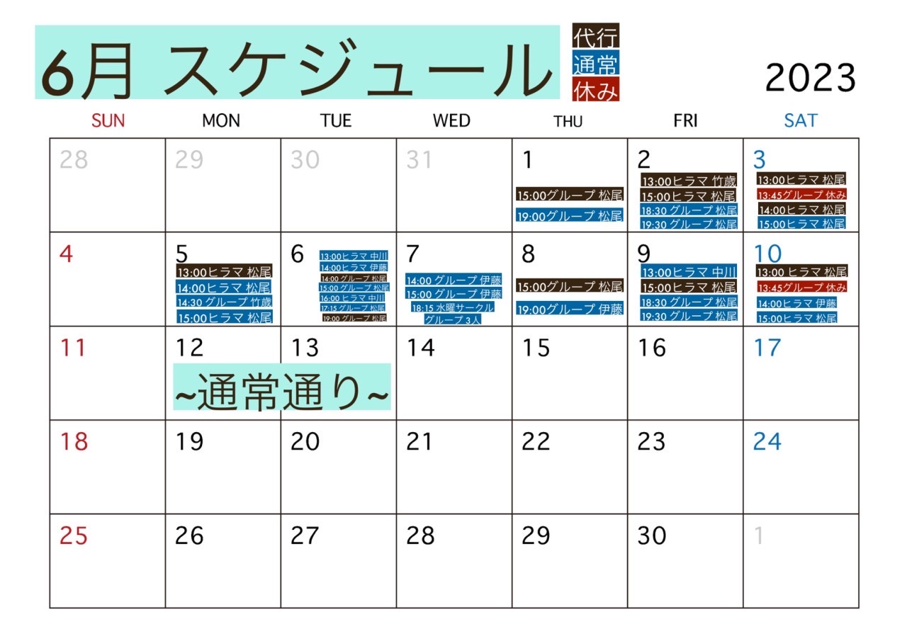 5、6月の代行スケジュールが完成しました✨✨